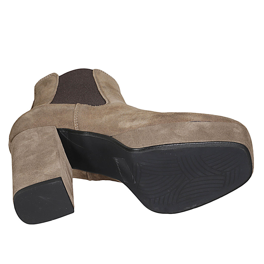 Woman's ankle boot with platform and elastic bands in taupe suede heel 9