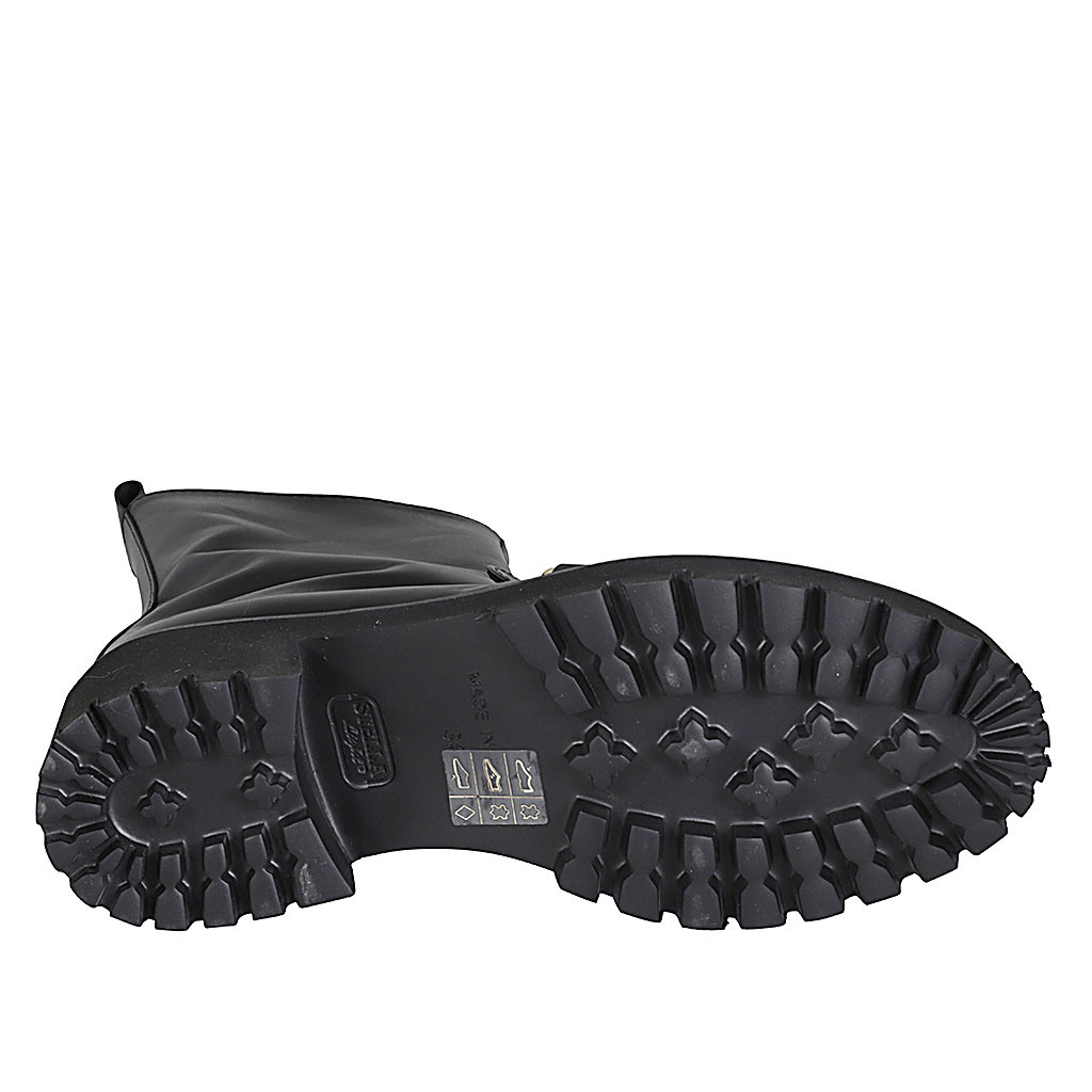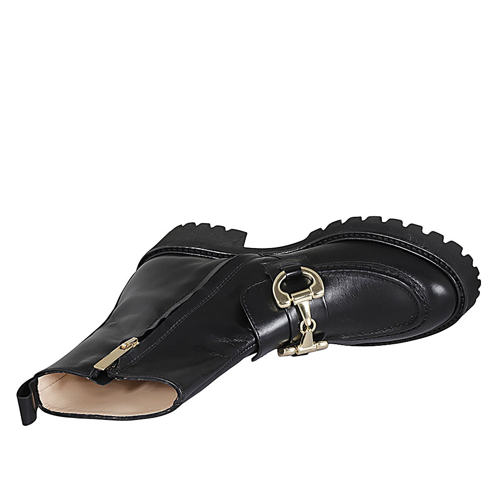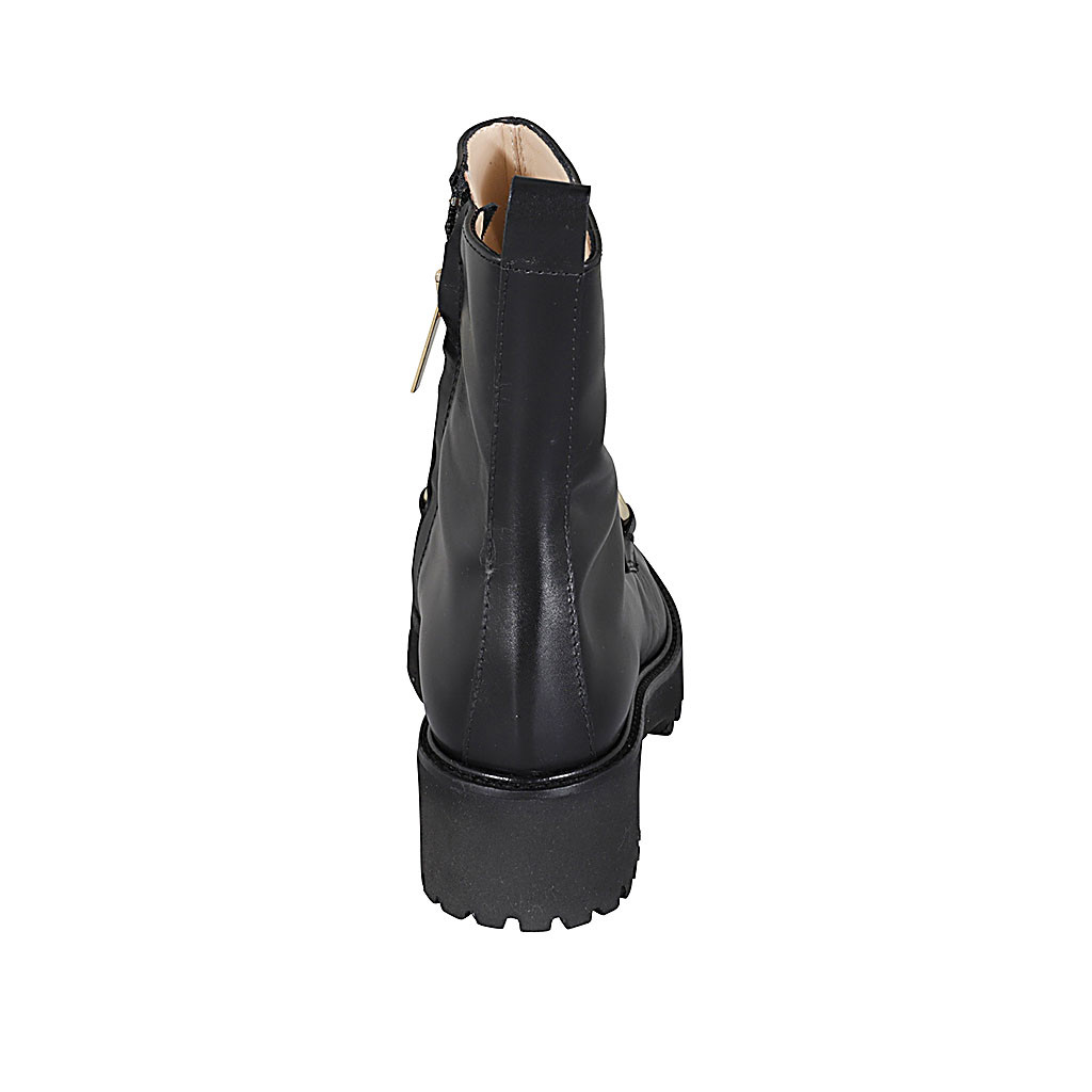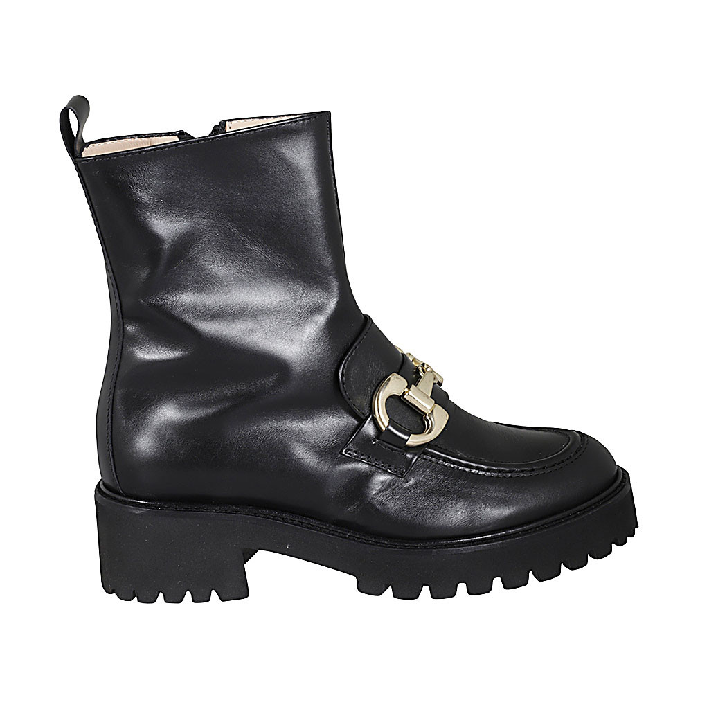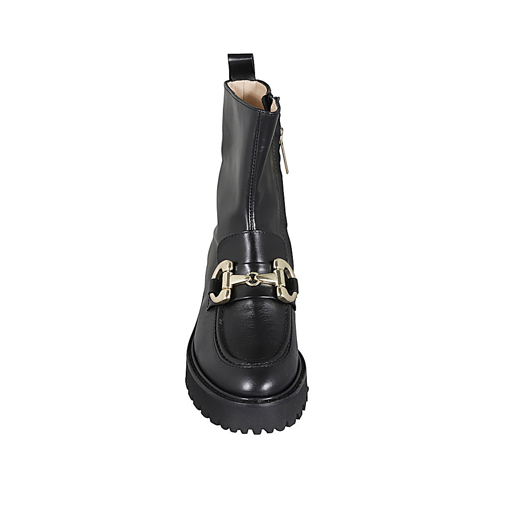 Woman's ankle boot with zipper and platform in black leather heel 11