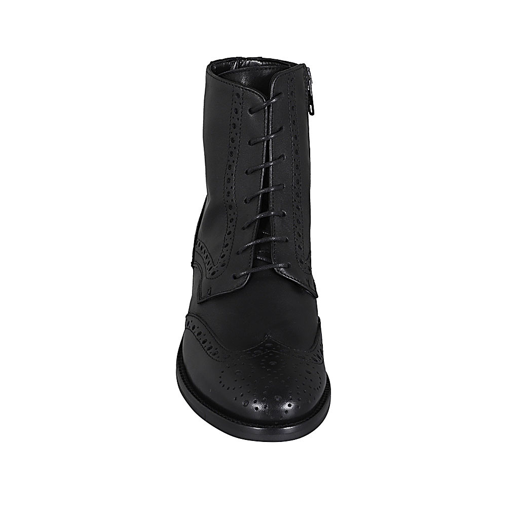 Woman's laced ankle boot with zipper and Brogue wingtip in black leather heel 3