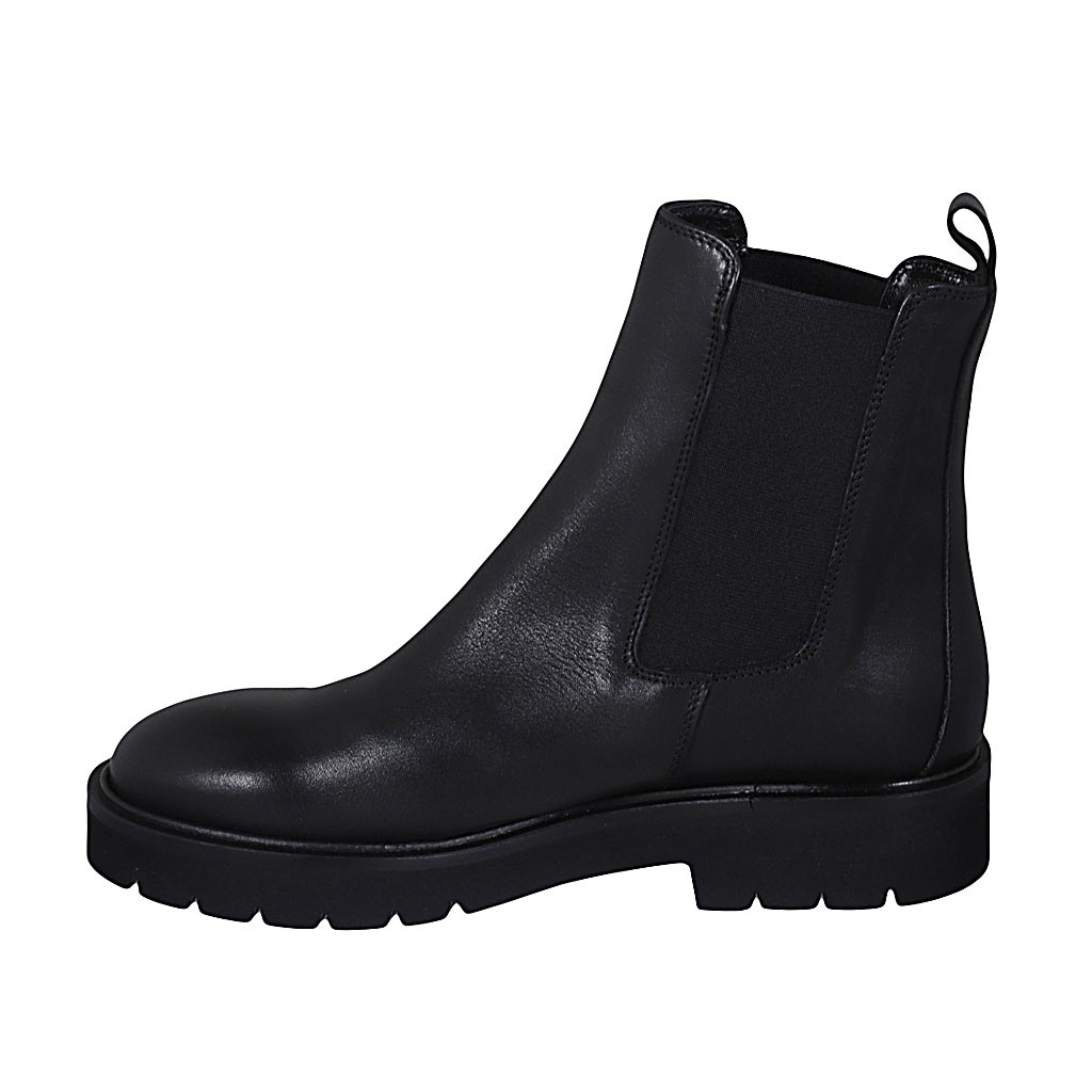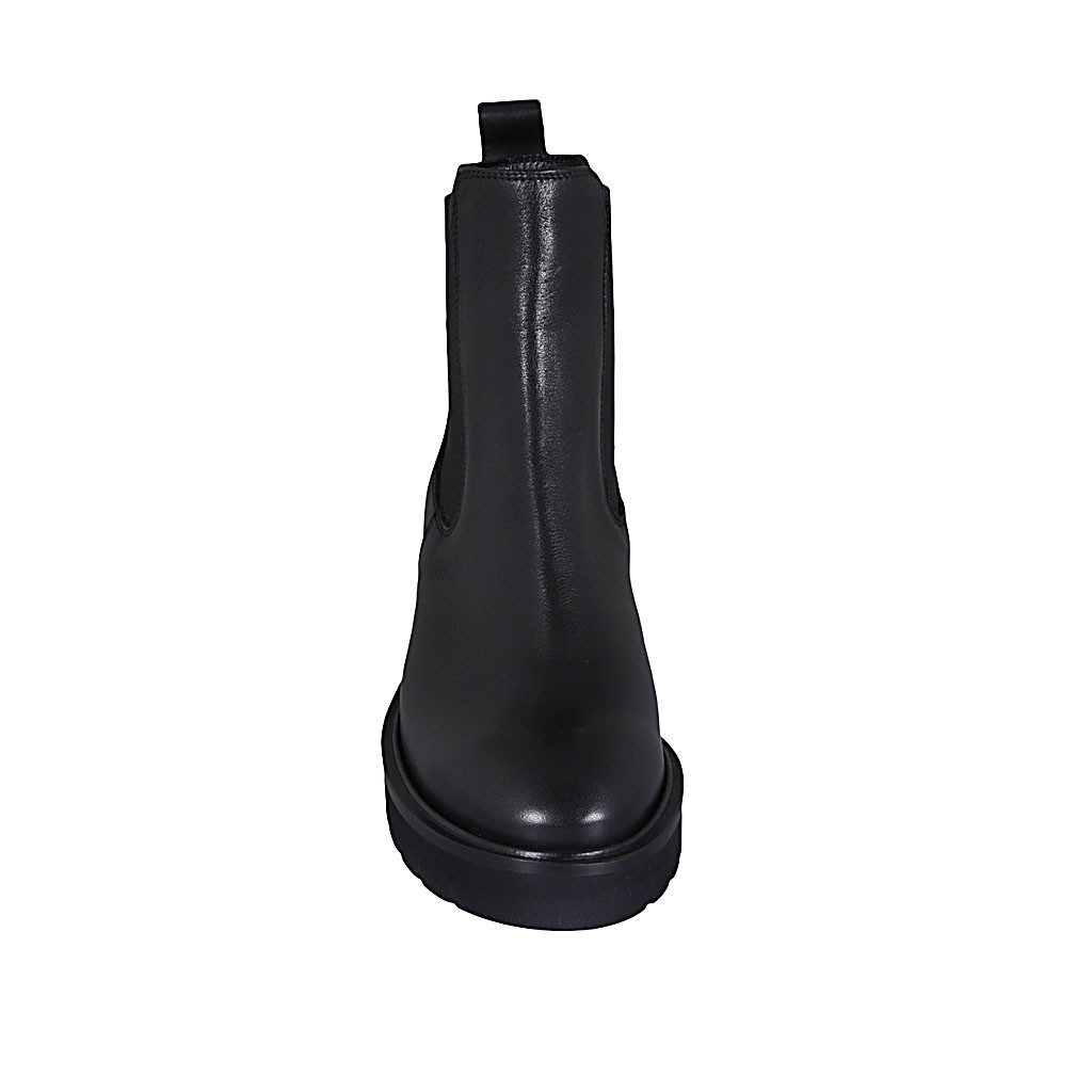 Woman's ankle boot in black leather with zipper with heel 3