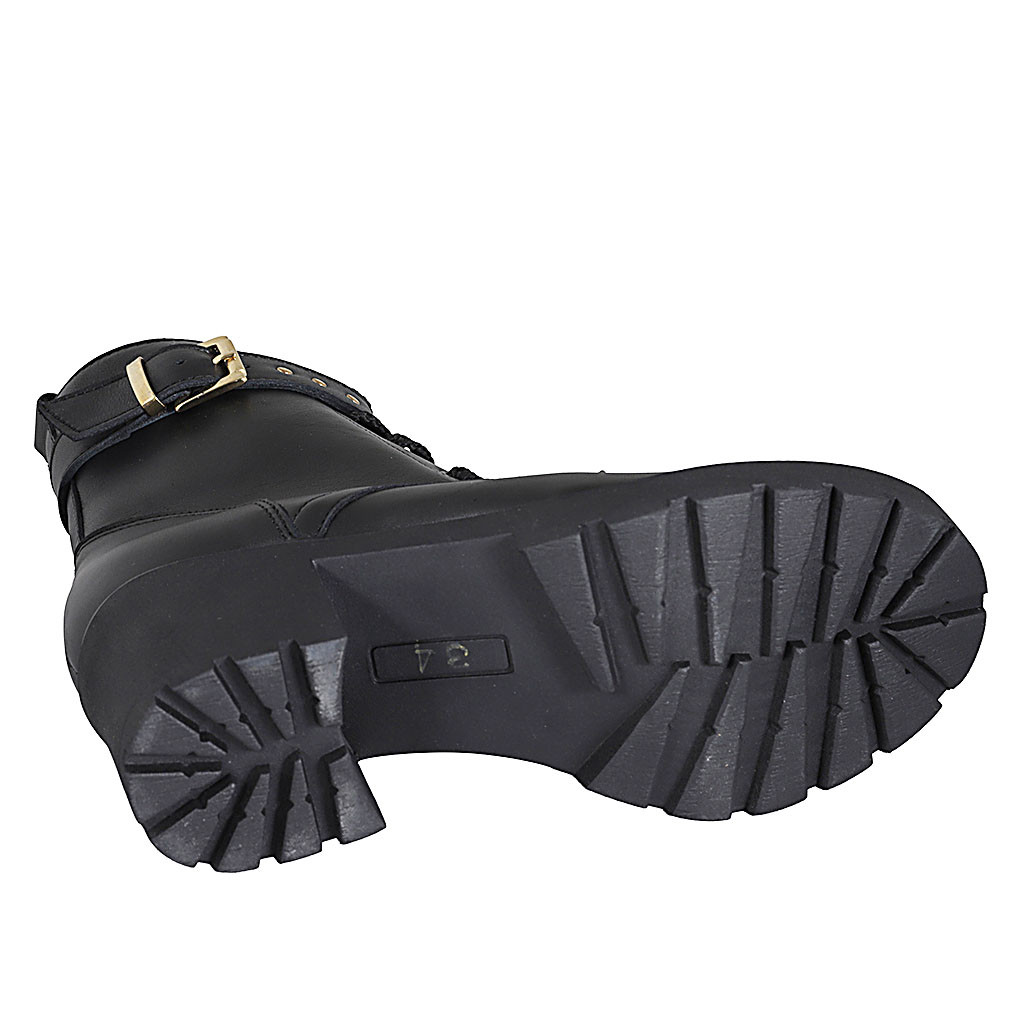 Woman's laced ankle boot with zipper and buckles in cognac brown leather heel 5