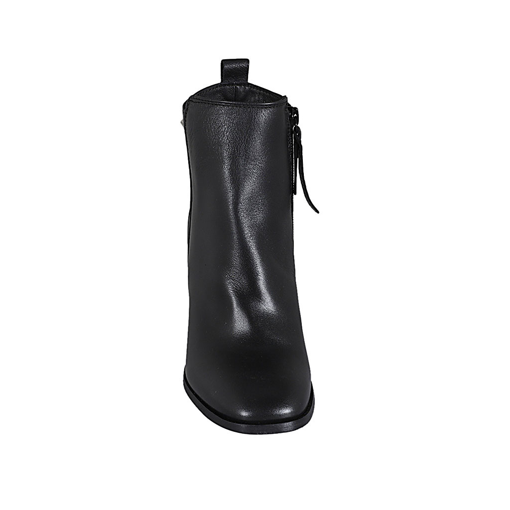 Woman's squared ankle boot with zipper and stud in black leather heel 7