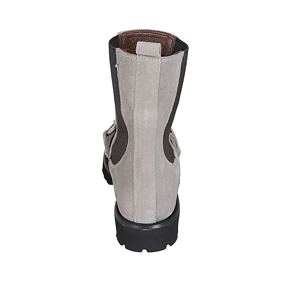 Woman's ankle boot with elastic bands in brown suede heel 3