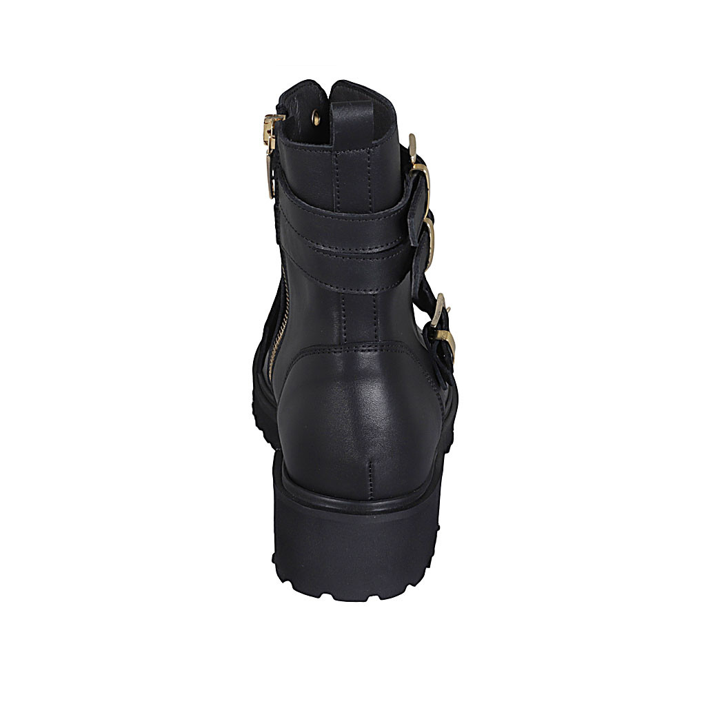Woman's laced ankle boot with zipper and buckles in black leather heel 4