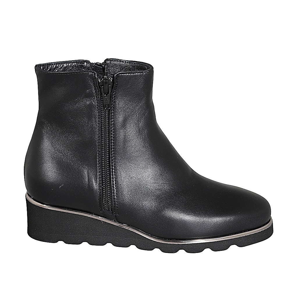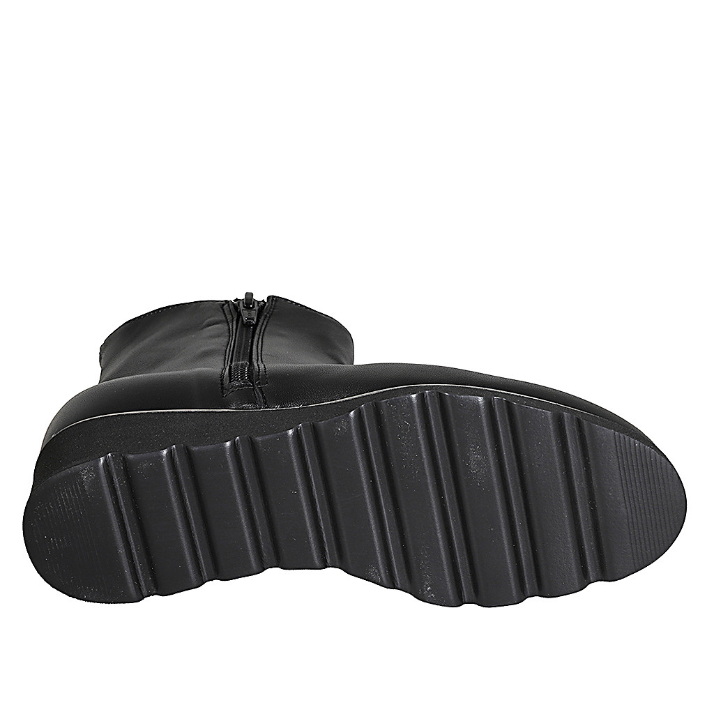Woman's ankle boot with elastic in black suede and grey laminated leather wedge heel 4