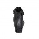 Woman's ankle boot with removable insole, buckle, elastic and zipper in black leather and laminated coal-colored leather heel 3