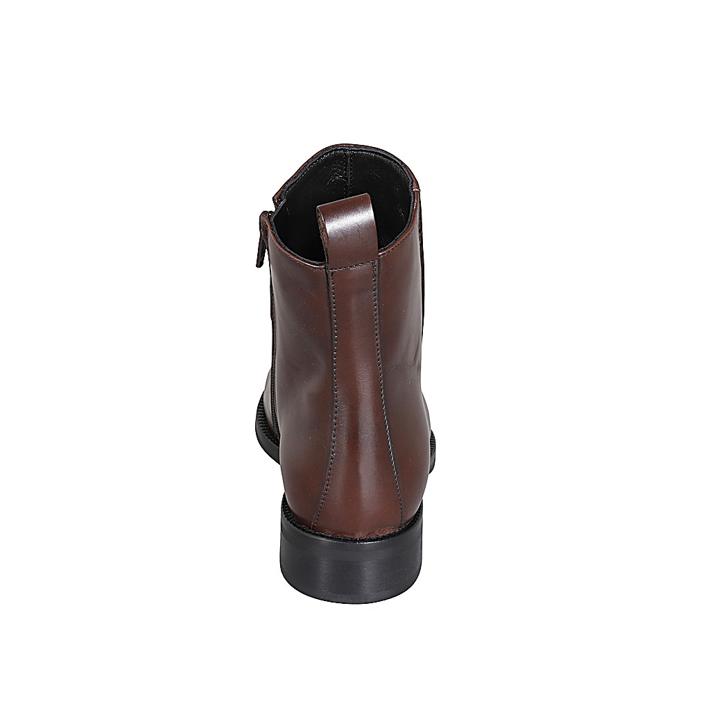 Woman's ankle boot in brown smooth leather with zipper heel 3