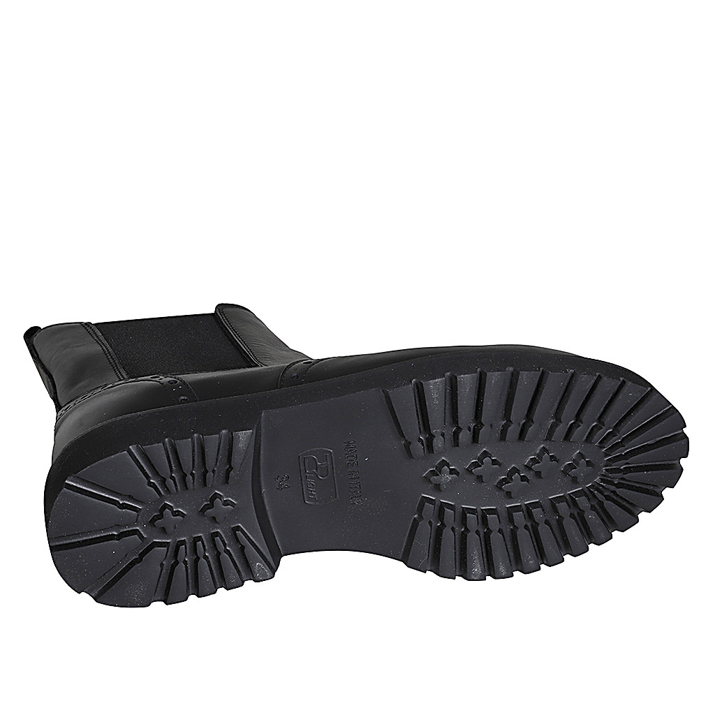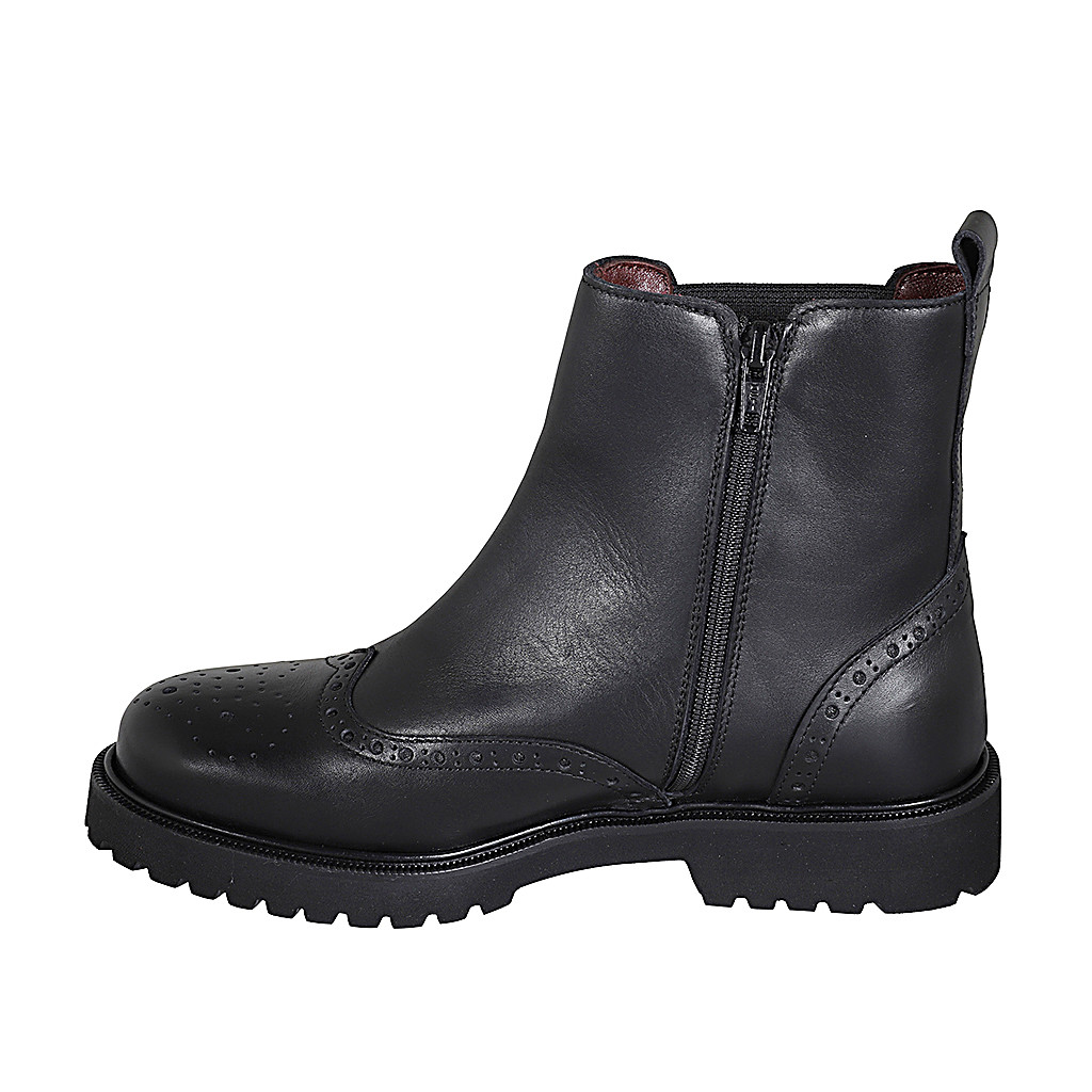 Woman's ankle boot with zipper, elastic band and Brogue wingtip in black leather heel 3