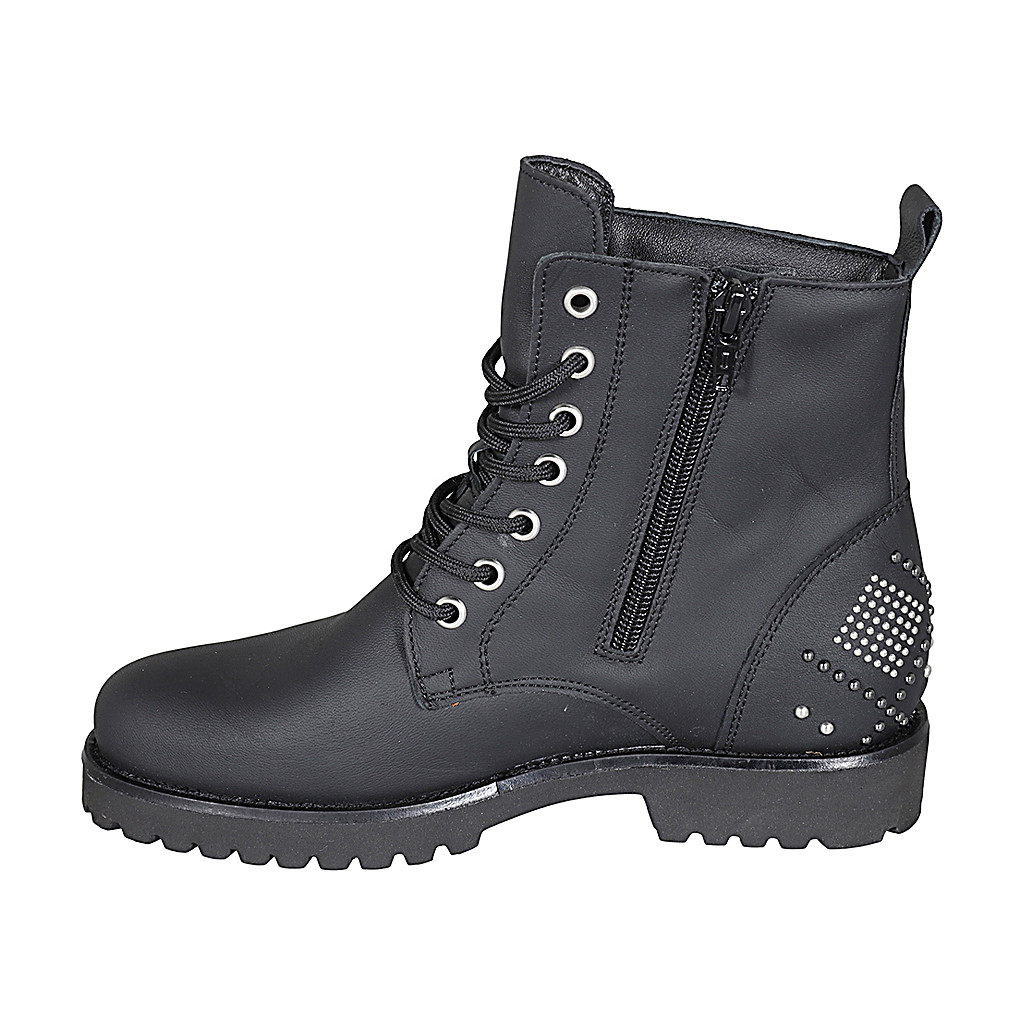 Woman's ankle boot in black leather with zipper and round tip heel 8