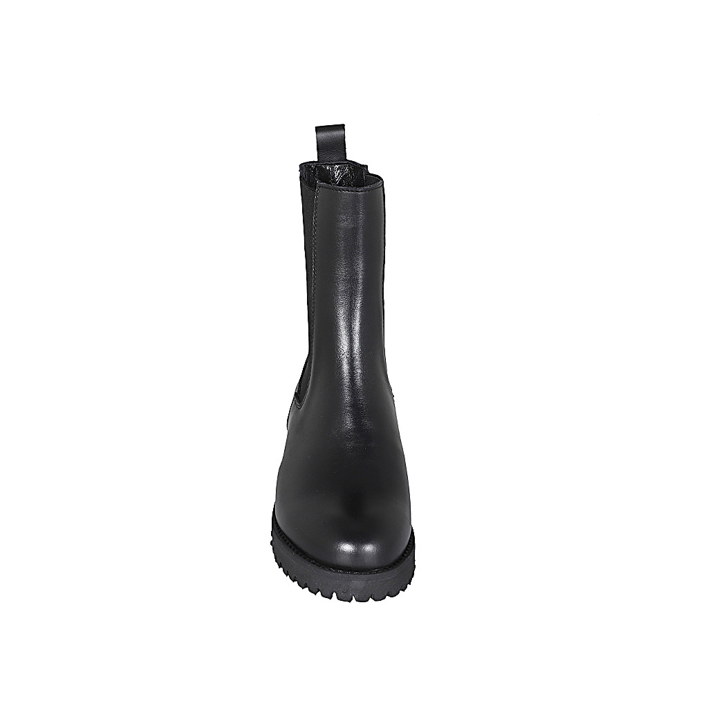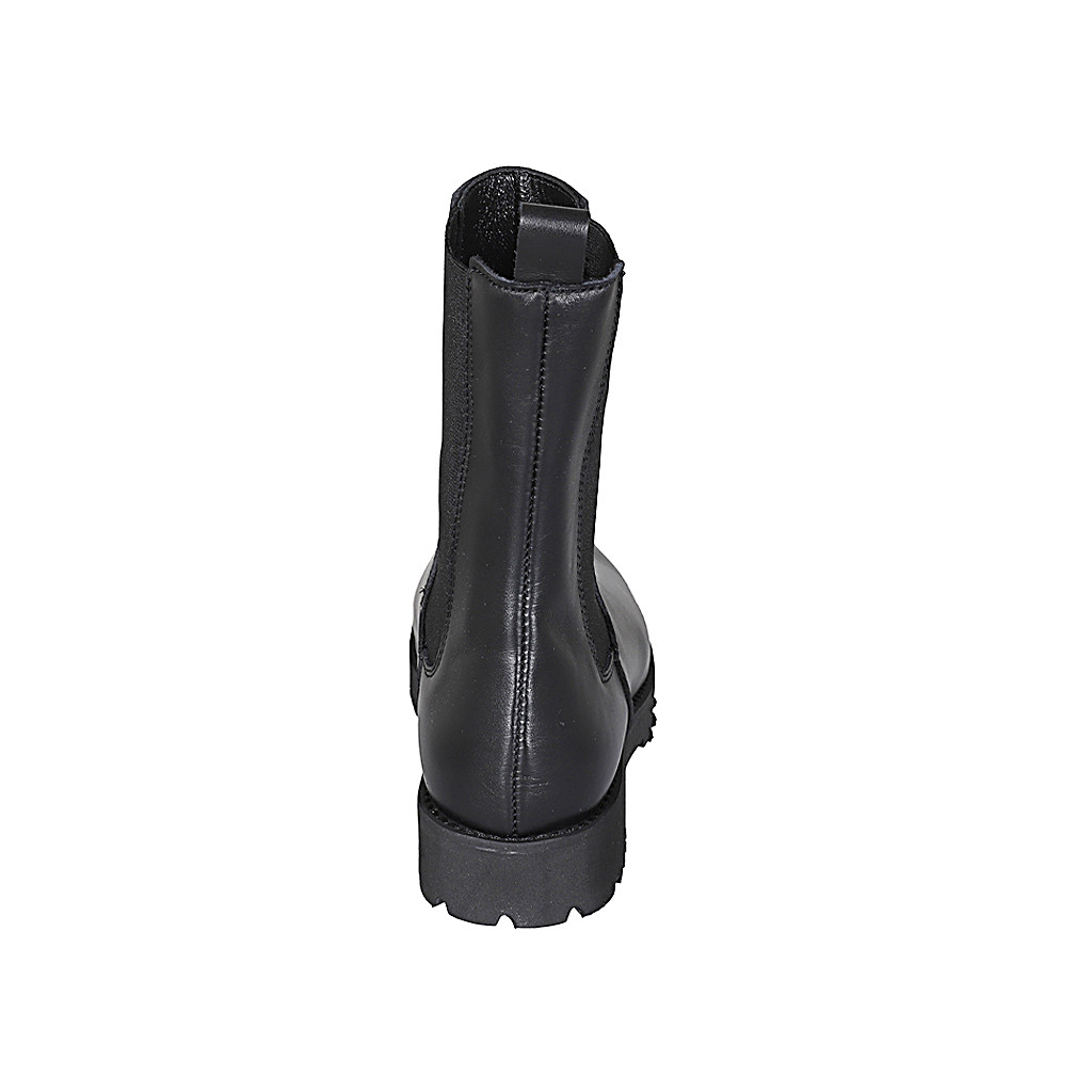 Woman's ankle boot in beige elastic material and suede heel 7