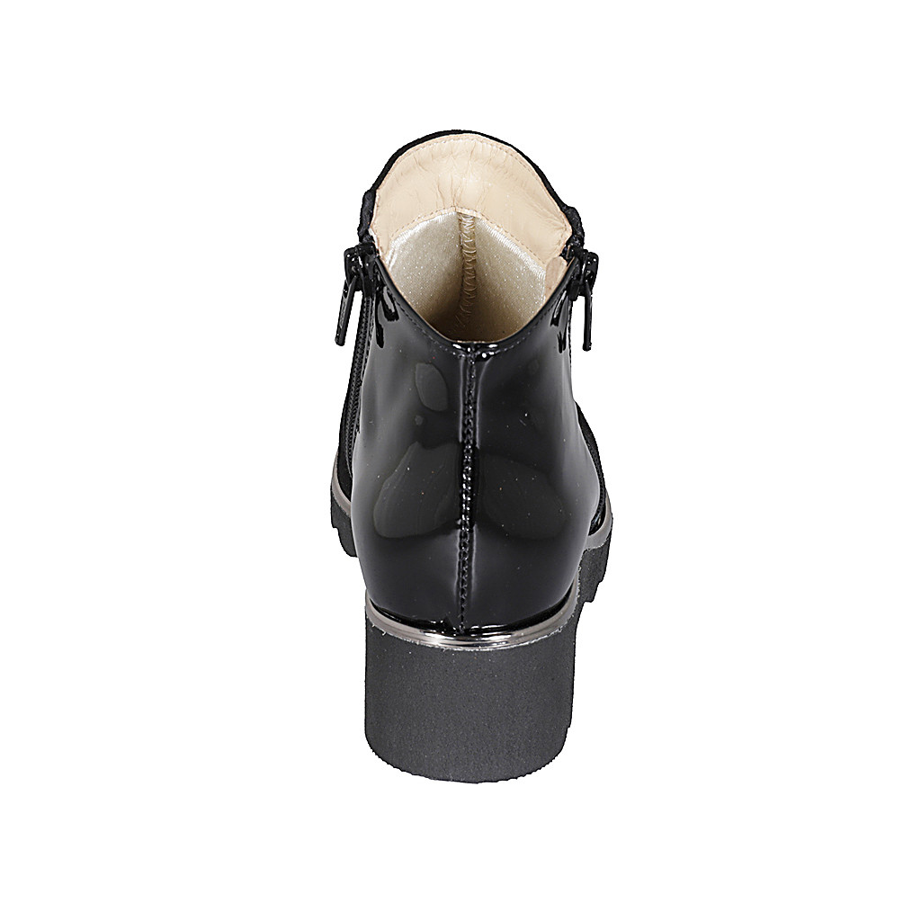 Woman's laced ankle boot with zipper in black smooth leather with heel 3