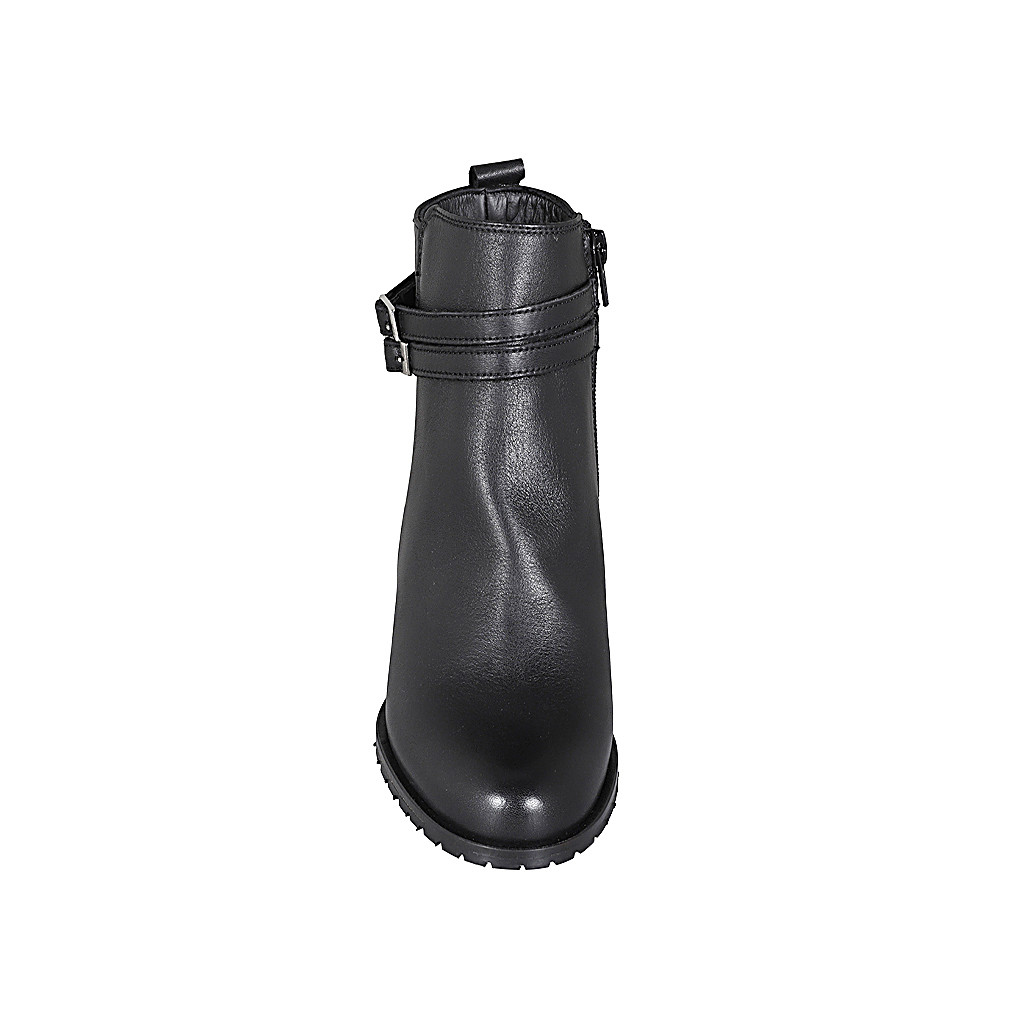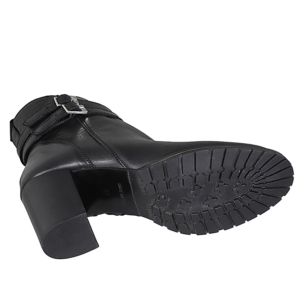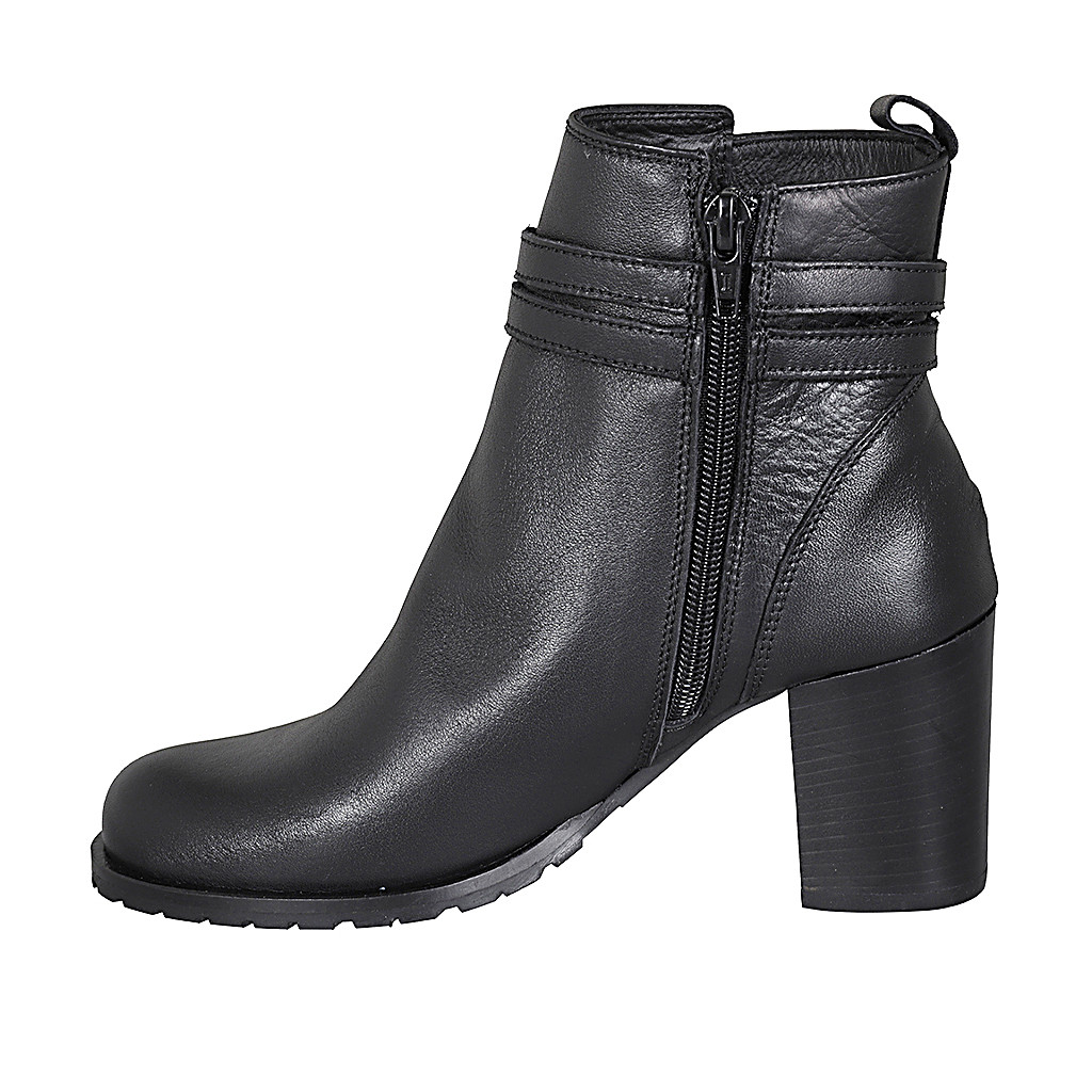 Woman's ankle boot with elastic bands in dark cognac brown leather heel 6