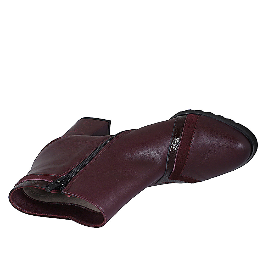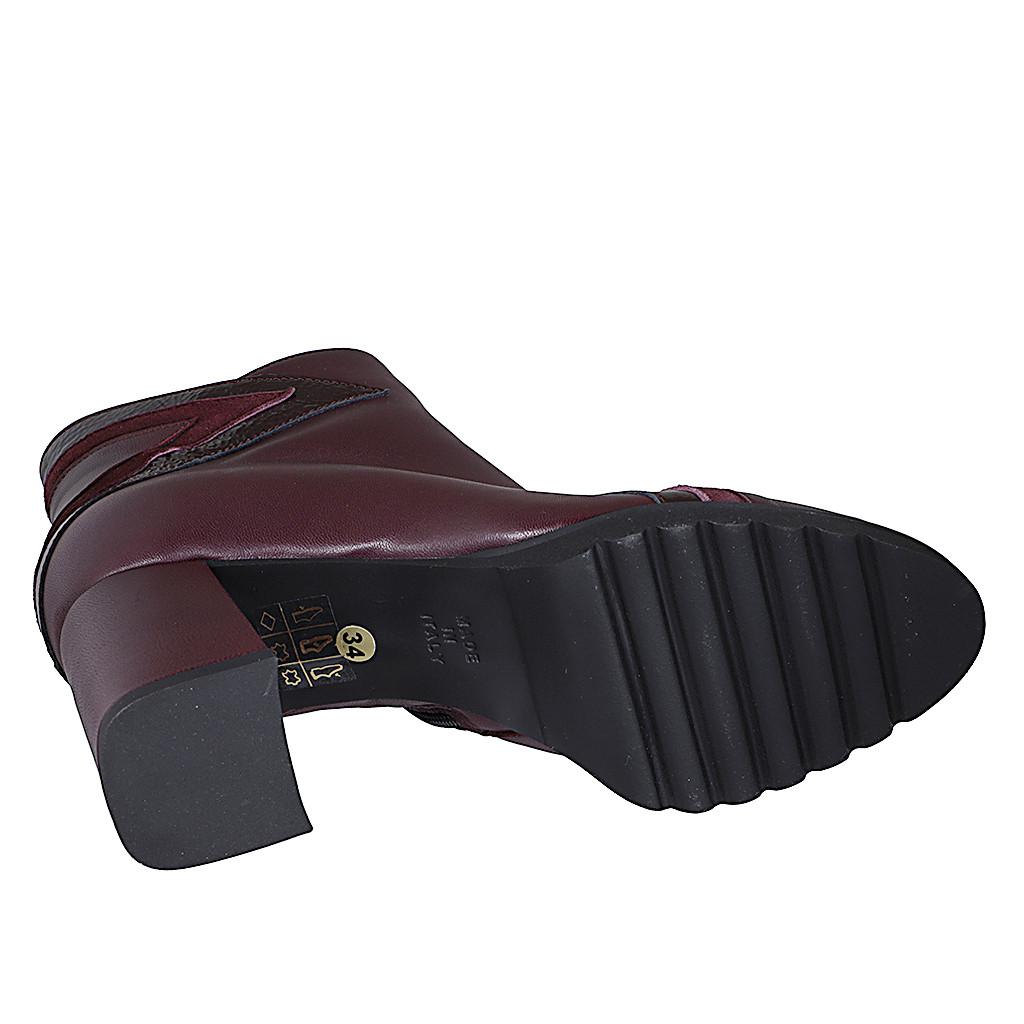 Woman's boot with half zipper in taupe suede and elastic material heel 4