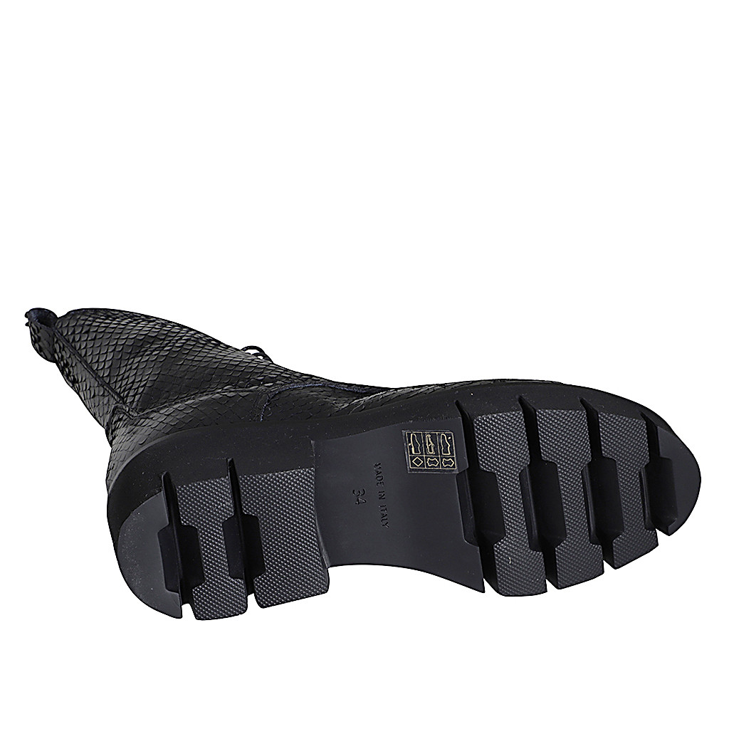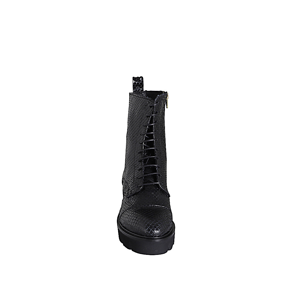 Woman's laced ankle boot with zipper and captoe in black printed leather heel 4