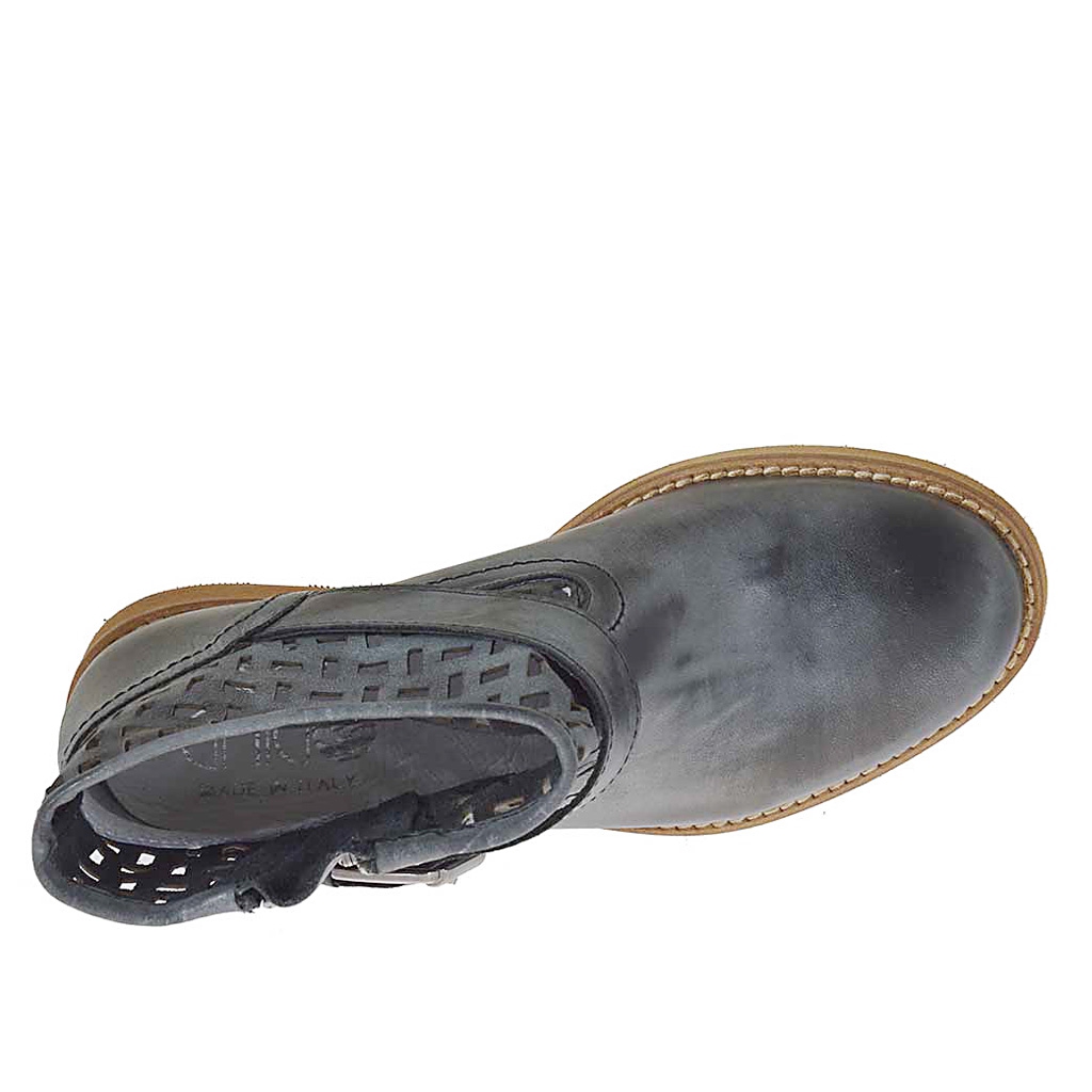 Woman's open shoe with crossed strap in black and white leather heel 2