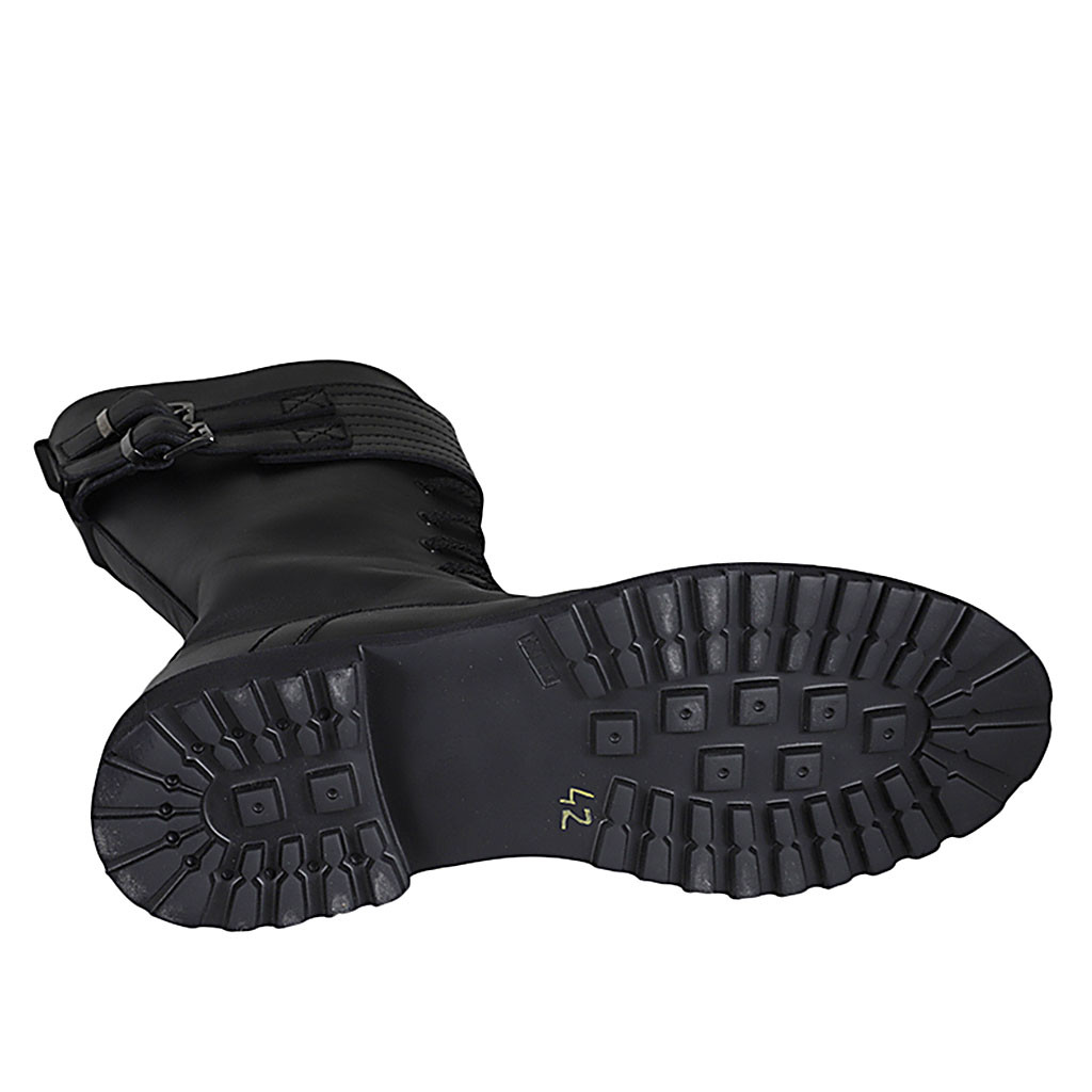 Woman's laced ankle boot with zipper and buckles in black leather heel 3