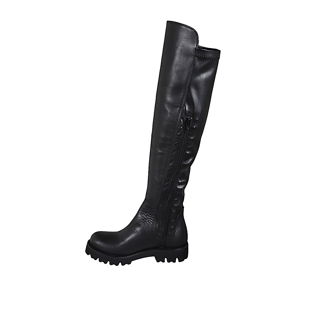 Woman's over-the-knee boot in black leather and elastic material heel 4