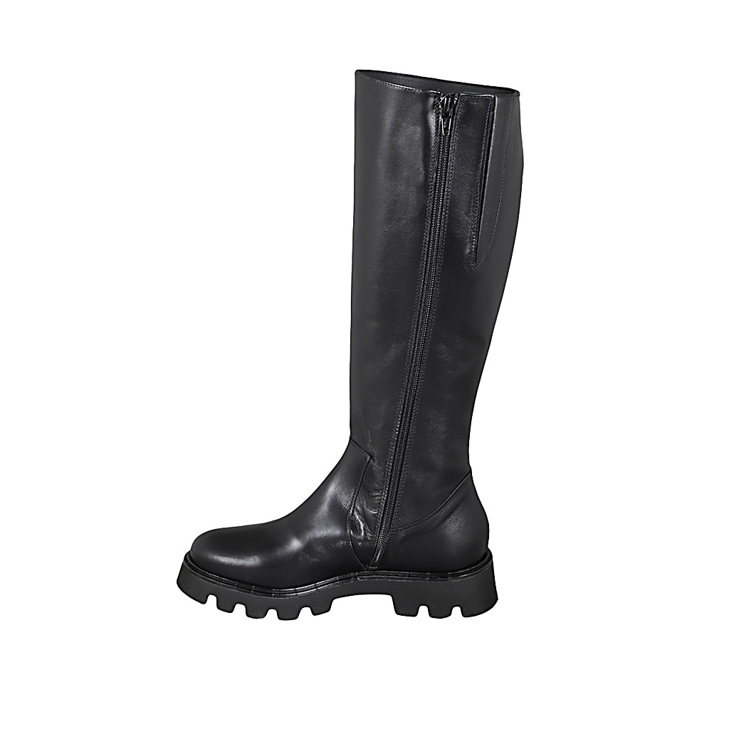 Woman's ballerina shoe with spotted haircalf, captoe and bow and black patent leather heel 2