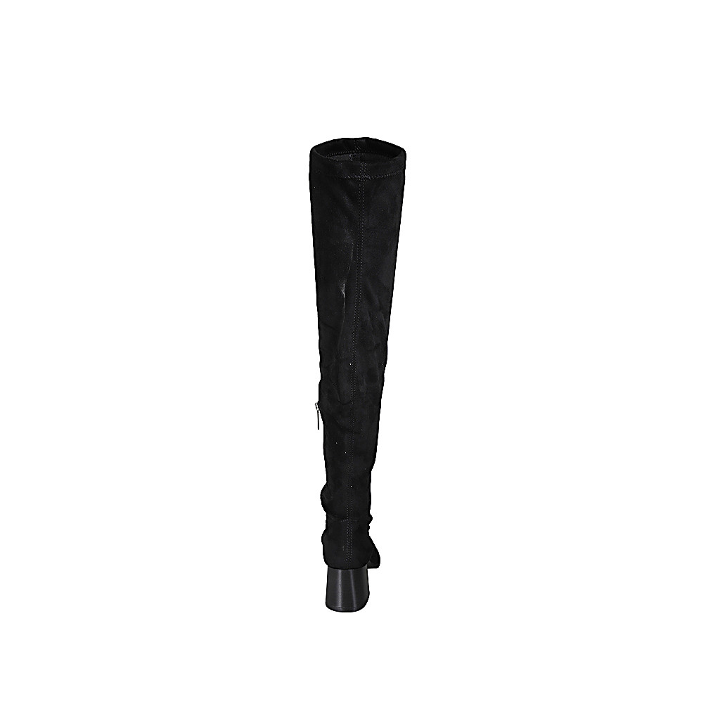 Woman's pointy over-the-knee boot in black suede and elastic fabric with half zipper heel 5