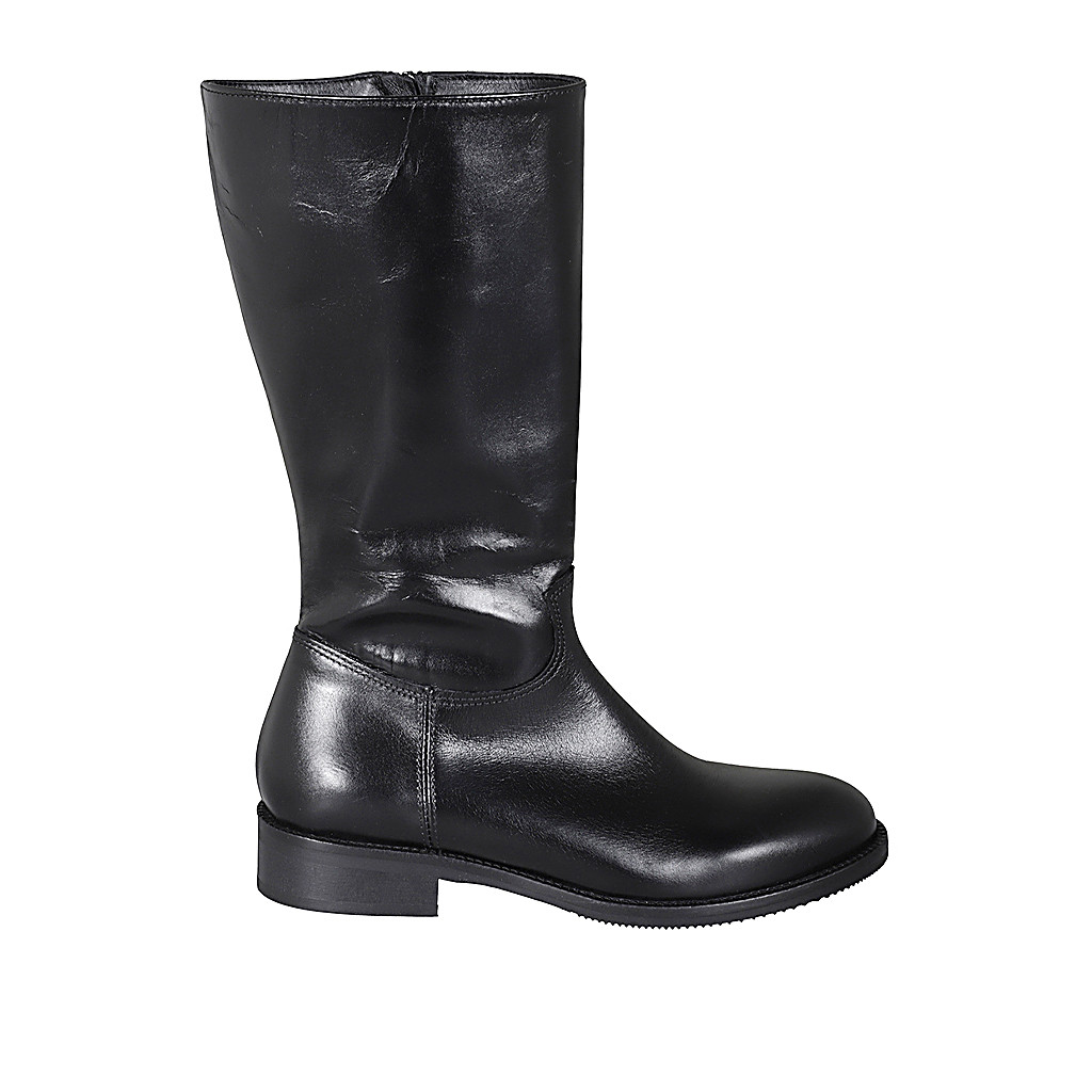 Woman's low boot in black leather with zipper heel 3