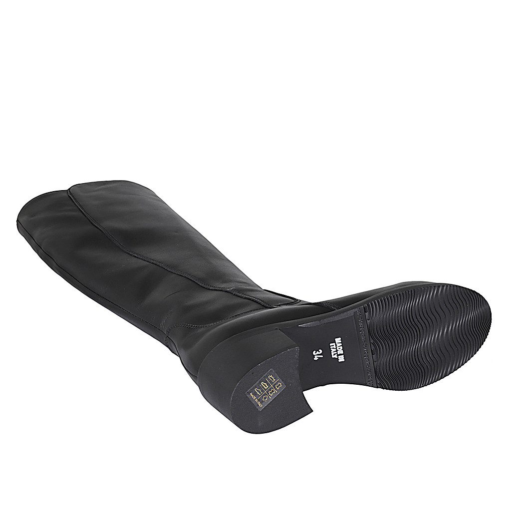 Woman's boot with zipper in black leather with heel 5