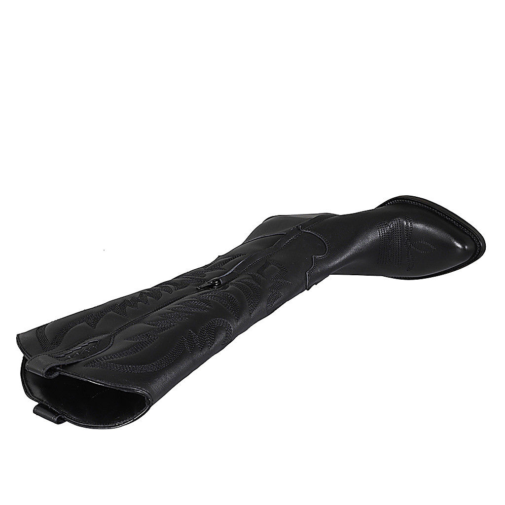 Woman's Texan boot with zipper and embroidery in brown leather heel 7