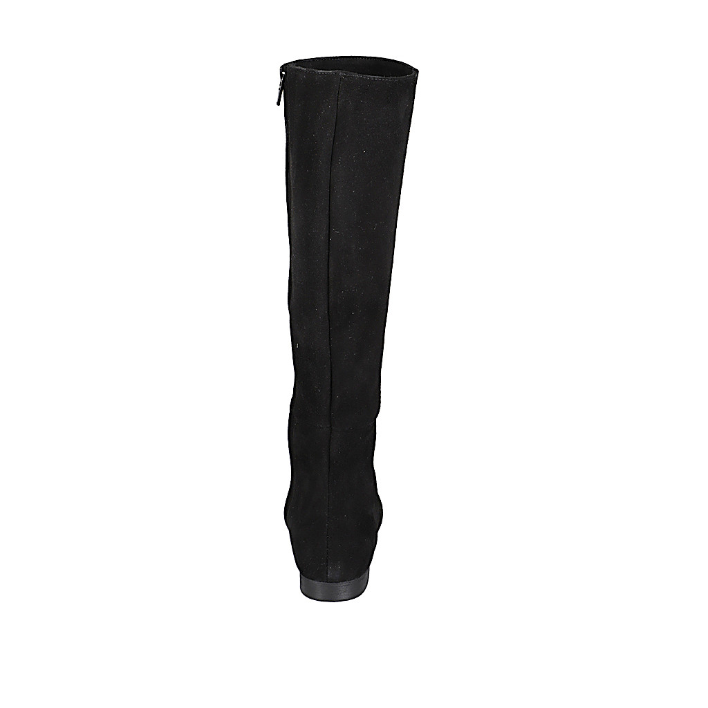 Woman's pointy boot with zipper and elastic band in black suede heel 2