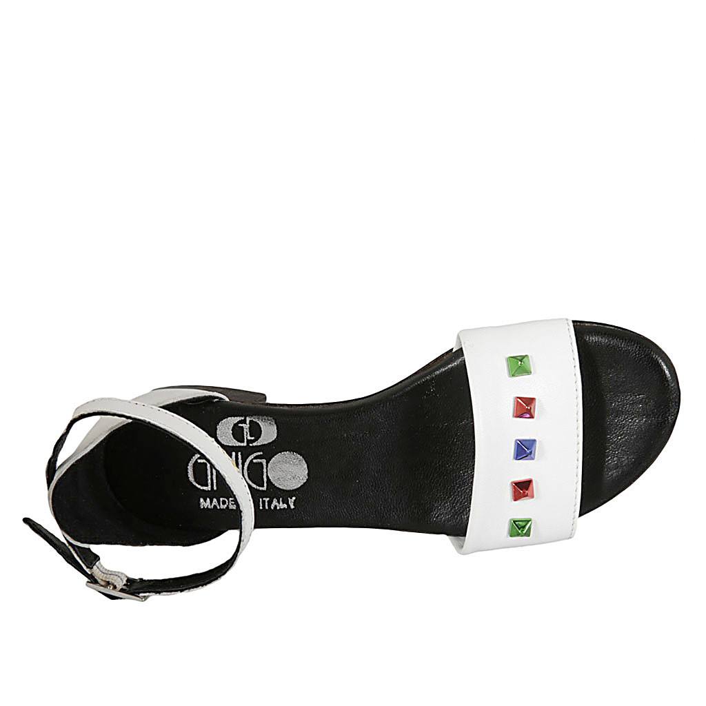 Woman's open shoe with strap and multicoloured studs in white leather heel 2